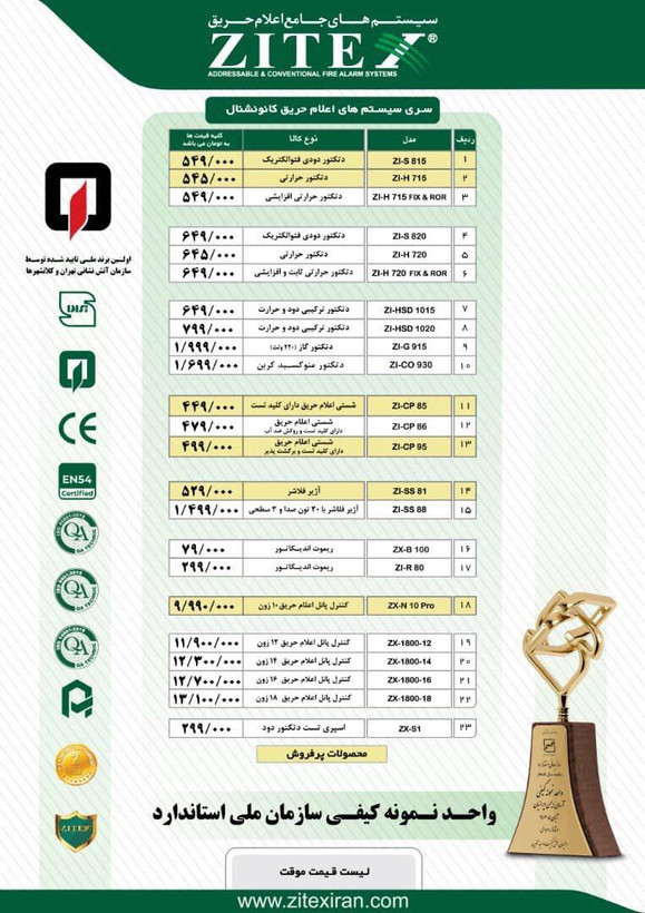 لیست قیمت مصرف کننده اعلام حریق